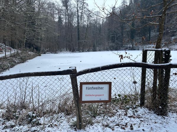 Fünfweiher derzeit fürs Eislaufen gesperrt
